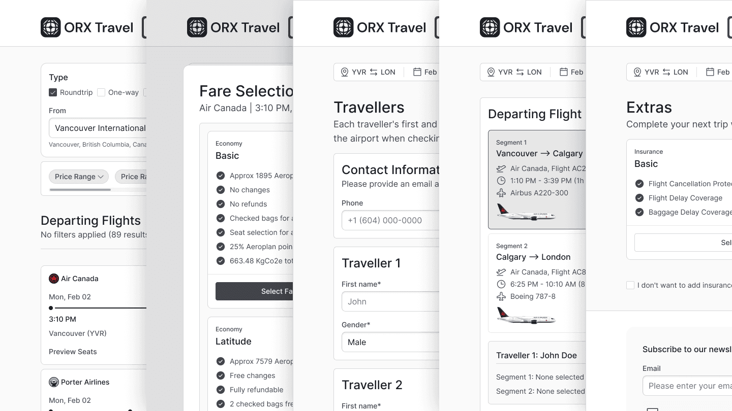 The flight booking flow at ORX Travel was creating friction for both users and the business. Corporate travelers struggled with excessive scrolling, unclear interactions. and slow-loading search results. Sometimes searches could take up to 15 minutes on large search requests. This would push users away from their online bookings and towards calling in to complete them. Key clients like BNW Travel reported that some their customers found parts of the app confusing, while internal stakeholders worried that outdated design and poor information hierarchy were causing decision fatigue and reducing booking completion. With minimal UI updates in three years, the platform risked falling behind competitors, directly impacting user retention, revenue, and client satisfaction.